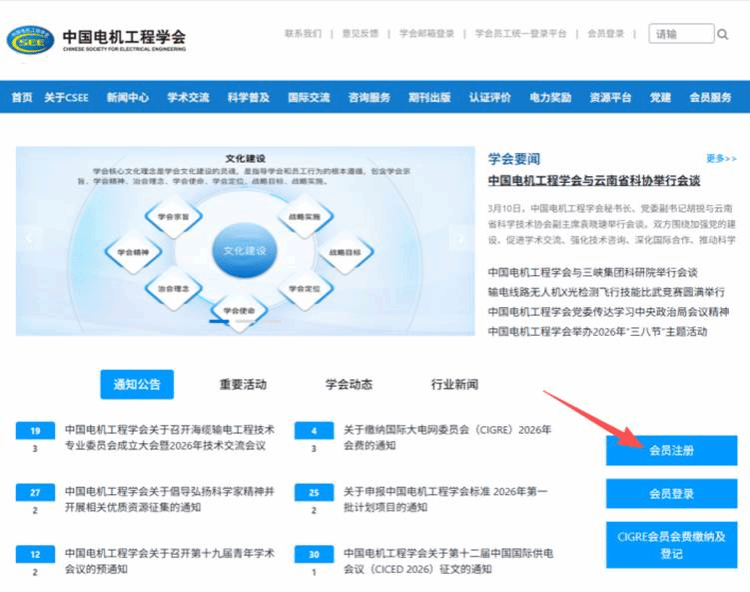 1)进入学会网站:浏览器地址栏中输入https://www.csee.org.cn,进入学会网站。